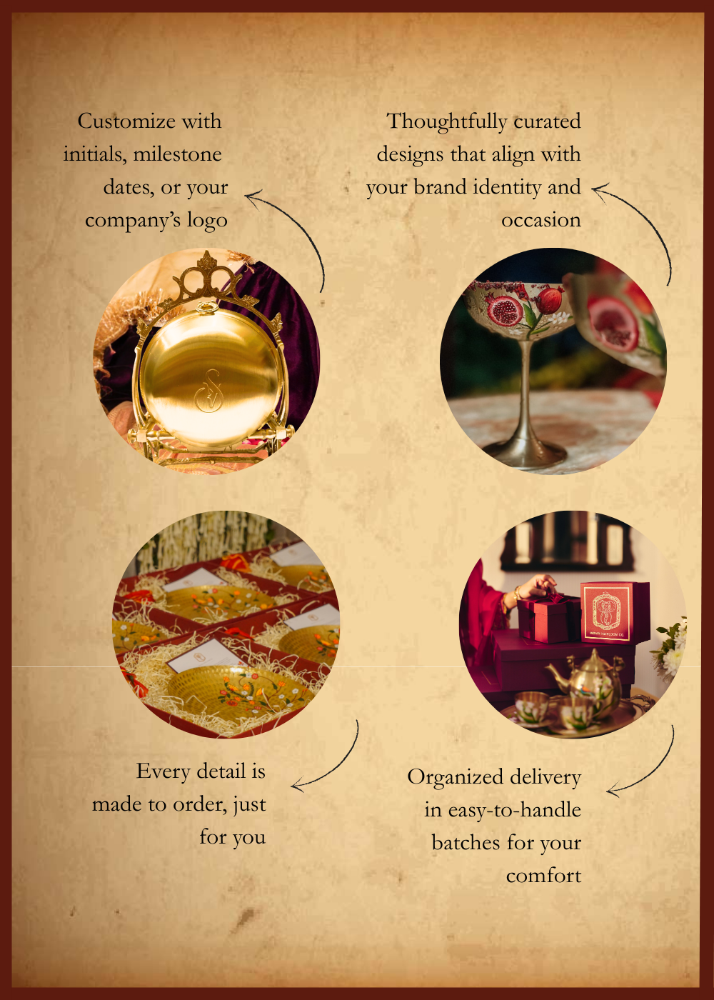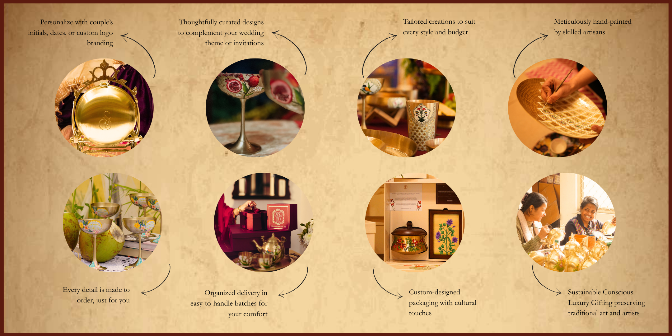 Each piece is individually handcrafted and hand-painted by skilled Indian artisans, making it truly one of a kind. All orders are made to order and can be customized with your brand’s logo, offering a thoughtful and enduring gifting experience.