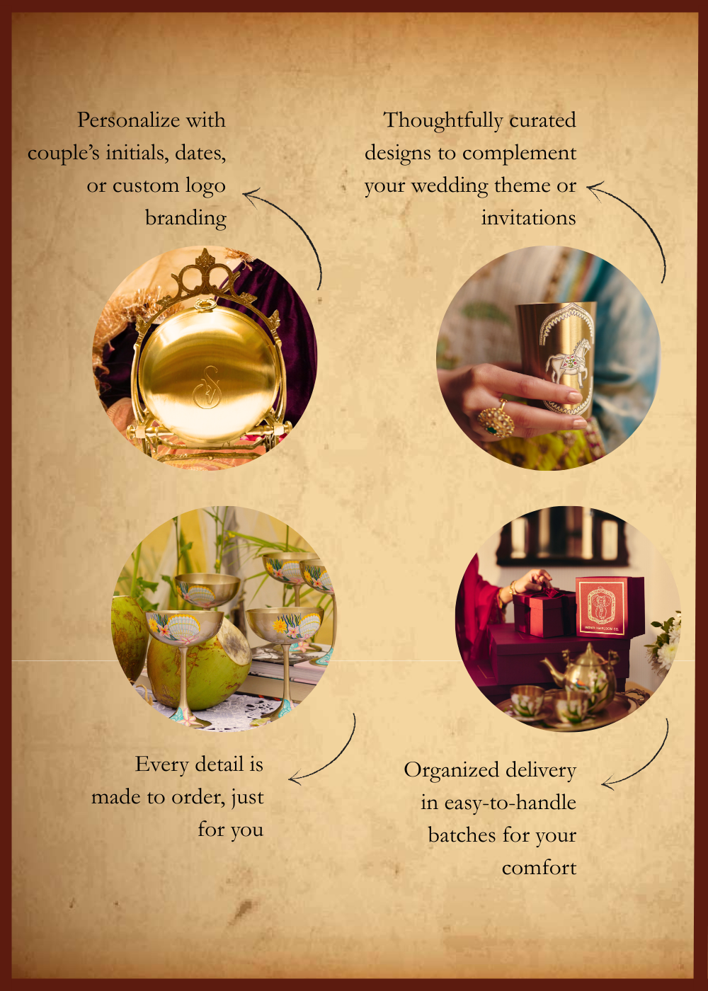 Mark your special day with favors that carry meaning and memory. Each piece is handcrafted and hand-painted by Indian artisans, making it a keepsake your guests will treasure for years to come.